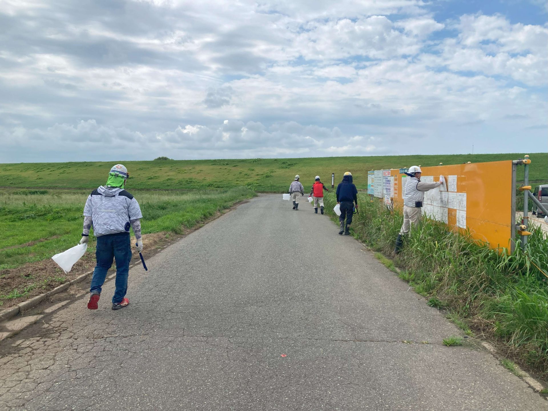 当日は職員が現場周辺の道路・草むらなどのごみ拾いを行いました。