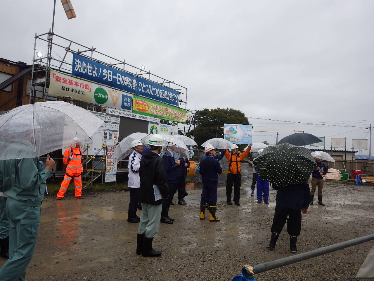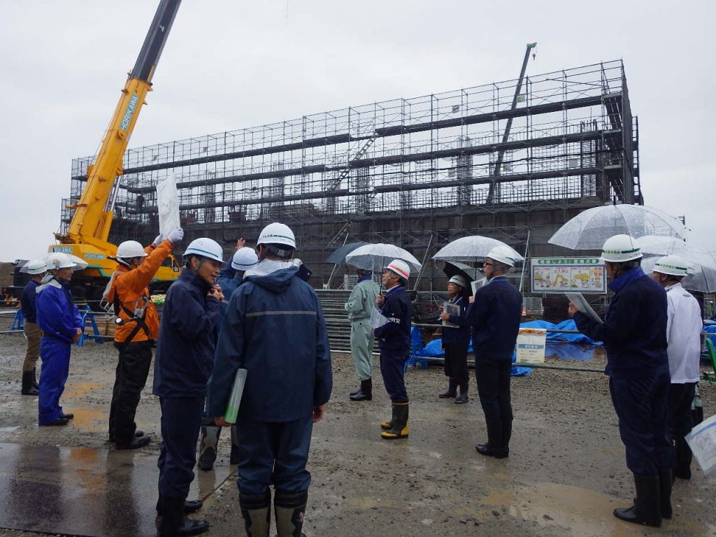 当日はあいにくの天気でしたが、新仁井田浄水場エリア(沈砂池・浄水池・管理棟 等)を中心に現在施工中の各施設をご見学いただきました。